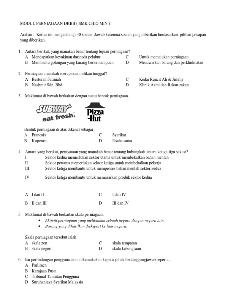 Soalan Kertas 1 Perniagaan Spm Pdf
